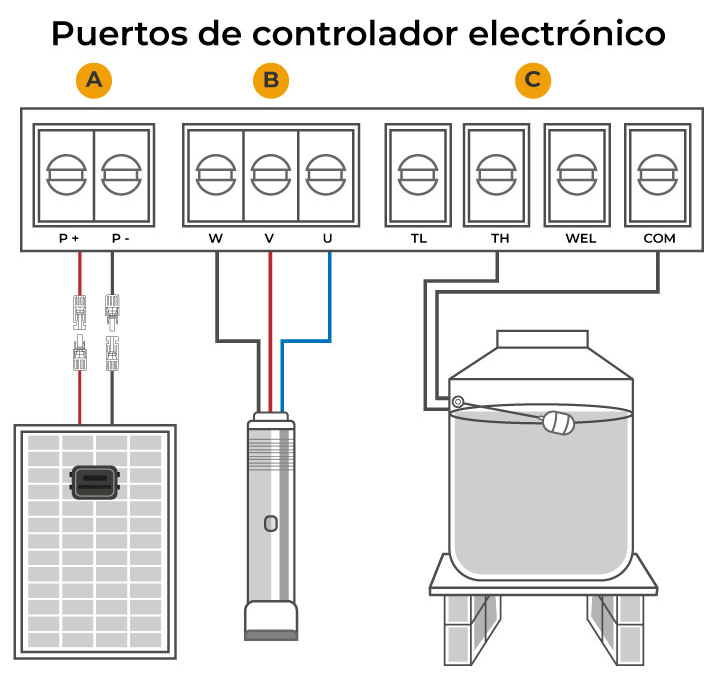 • Profundidad de instalación: se refiere a la distancia desde la abertura del pozo hasta el lugar específico donde se colocará la bomba dentro del pozo.